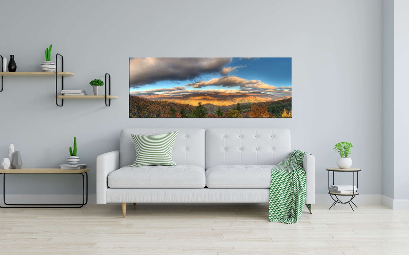 In a traditional gallery wrap, the image is on the front and the sides are white, blank canvas. For our Infinity Wrap Canvas™ we use a different approach. Our images are specially laid out and cropped so that we can wrap the image around the frame without any exposed white space. This means that no matter the angle, you will see the high-quality giclée you purchased.