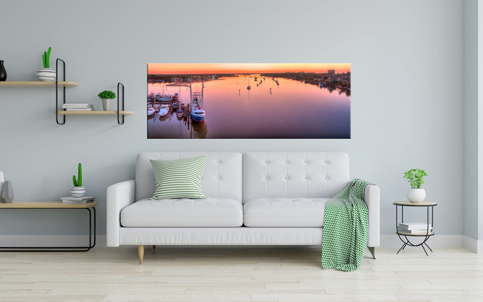 In a traditional gallery wrap, the image is on the front and the sides are white, blank canvas. For our Infinity Wrap Canvas™ we use a different approach. Our images are specially laid out and cropped so that we can wrap the image around the frame without any exposed white space. This means that no matter the angle, you will see the high-quality giclée you purchased.