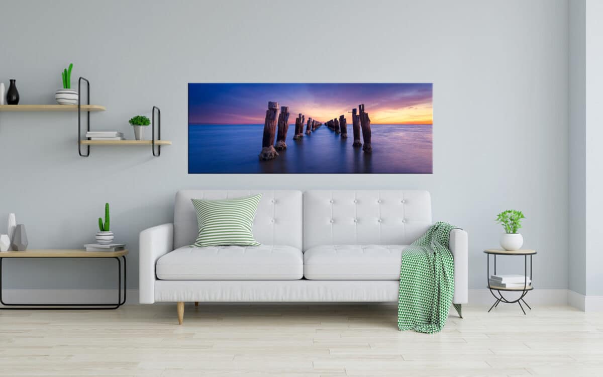 In a traditional gallery wrap, the image is on the front and the sides are white, blank canvas. For our Infinity Wrap Canvas™ we use a different approach. Our images are specially laid out and cropped so that we can wrap the image around the frame without any exposed white space. This means that no matter the angle, you will see the high-quality giclée you purchased.